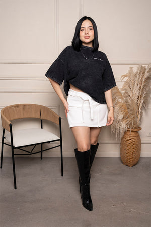 Falda short de corte recto con correa integrada del mismo material. Combina comodidad y estilo con un diseño femenino y funcional.